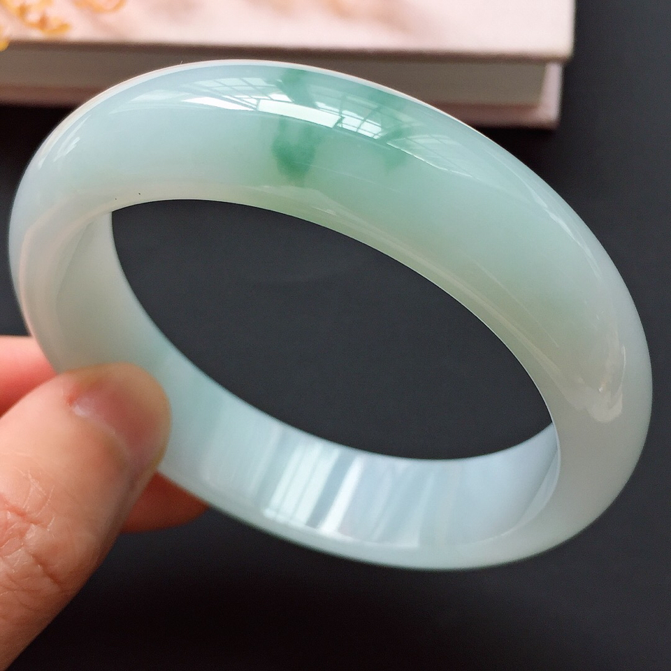 - 白底青翡翠我們也叫細糯種或者糯冰種白底飄綠翡翠,主要特征就是底子純白細膩、干凈無暇,綠色色調較為鮮艷俏麗,呈現塊狀或者團絮狀暈染在白色翡翠底子上。綠色顯得更加鮮艷明媚,別具一格,就是這樣的白底青翡翠雕刻出來的翡翠手鐲,可以說是深受廣大女性翠友的喜愛。對于白底青翡翠手鐲來說適要怎么挑選呢?挑選的時候